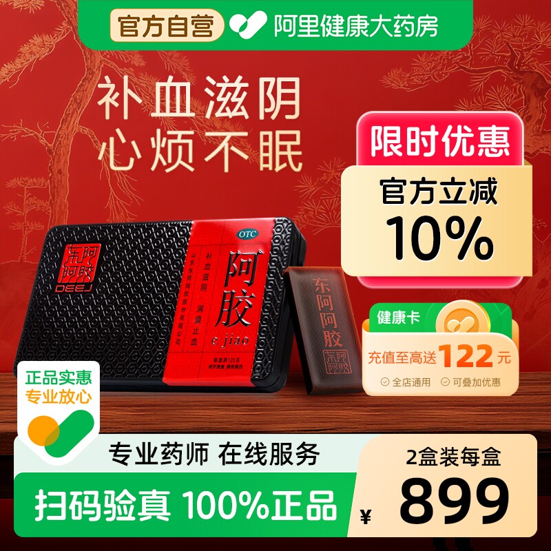 东阿阿胶块OTC阿胶块125g*2礼盒装补血滋阴滋补长辈送礼官方正品