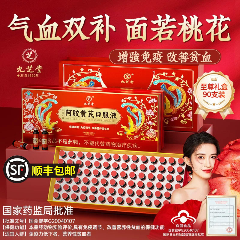 九芝堂阿胶黄芪补血口服液女性补气养血补铁女生调理贫血礼盒正品