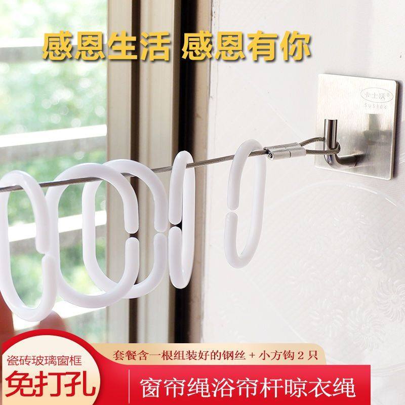 窗帘免打孔安装铁丝绳免打孔伸缩杆阳台卫生间浴帘杆窗帘杆钢丝绳