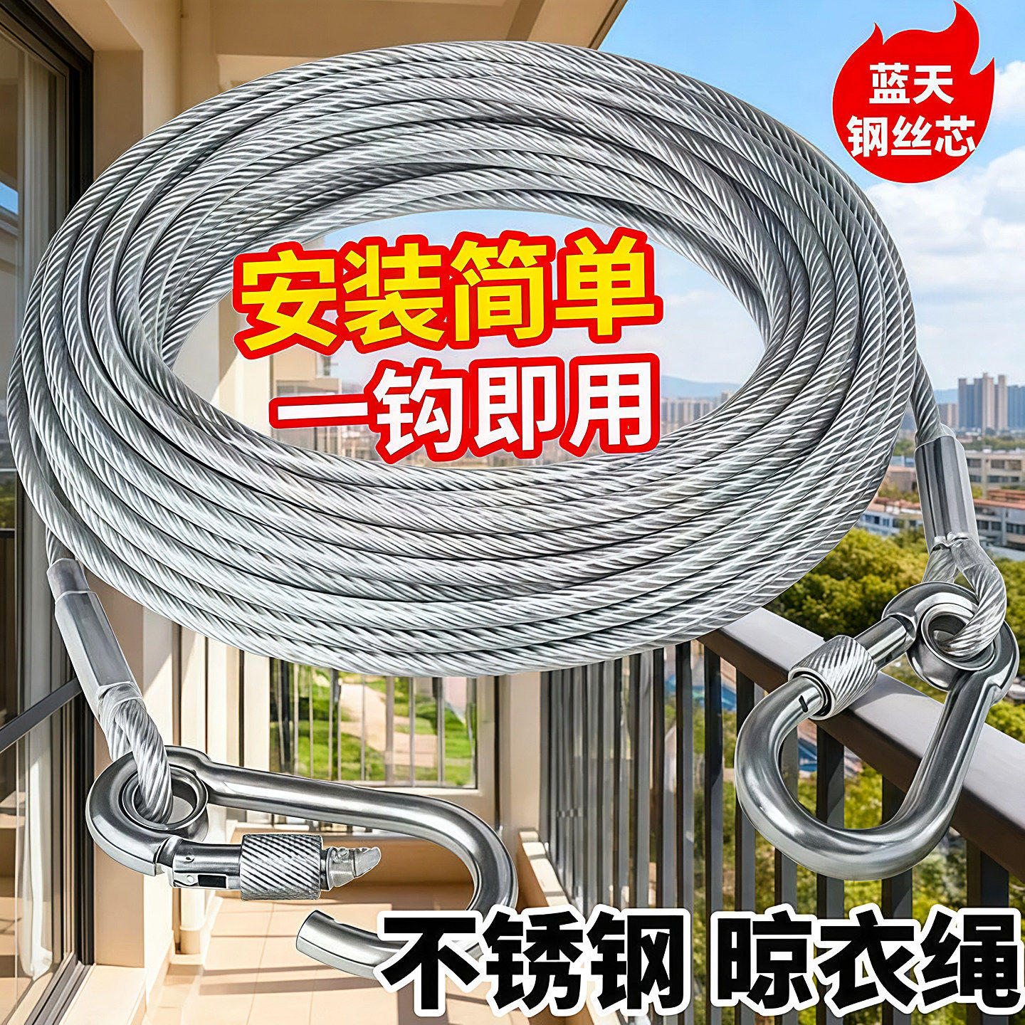 包塑304不锈钢晾衣钢丝绳阳台加粗户外晒衣绳被子挂衣绳3/4-6m8mm