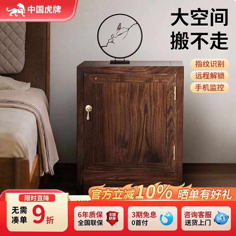 虎牌保险柜实木床头柜一体隐藏式家用防盗智能指纹密码搬不走2025新款中式大空间3c认证卧室存钱小型保险箱