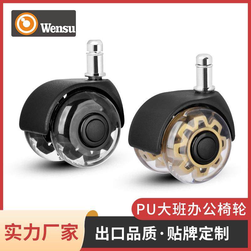 3寸黑色透明PU插杆脚轮家具电脑椅轮子万向轮静音轮办公椅轮子滚