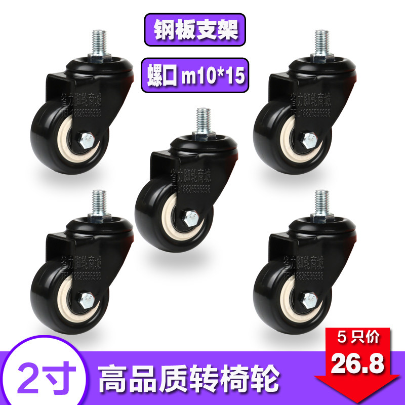 2寸转椅轮子万向轮 丝杆螺口配件滚轮轱辘脚轮家具电脑椅滑轮静音
