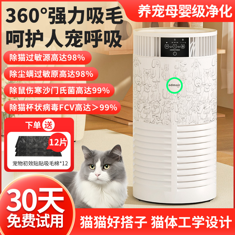 空气净化器二手烟家用负离子净化机吸宠物猫毛除甲醛室内桌面小型