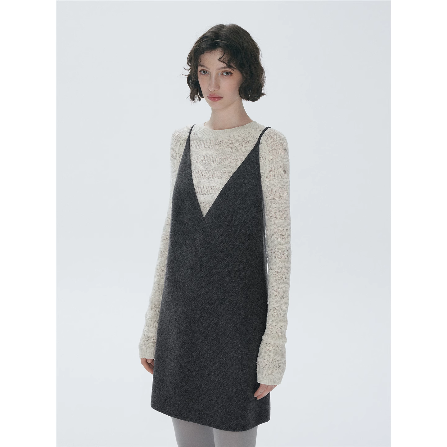 7959高级感法式v领无袖马甲裙女修身显瘦毛呢秋冬打底背心连衣裙