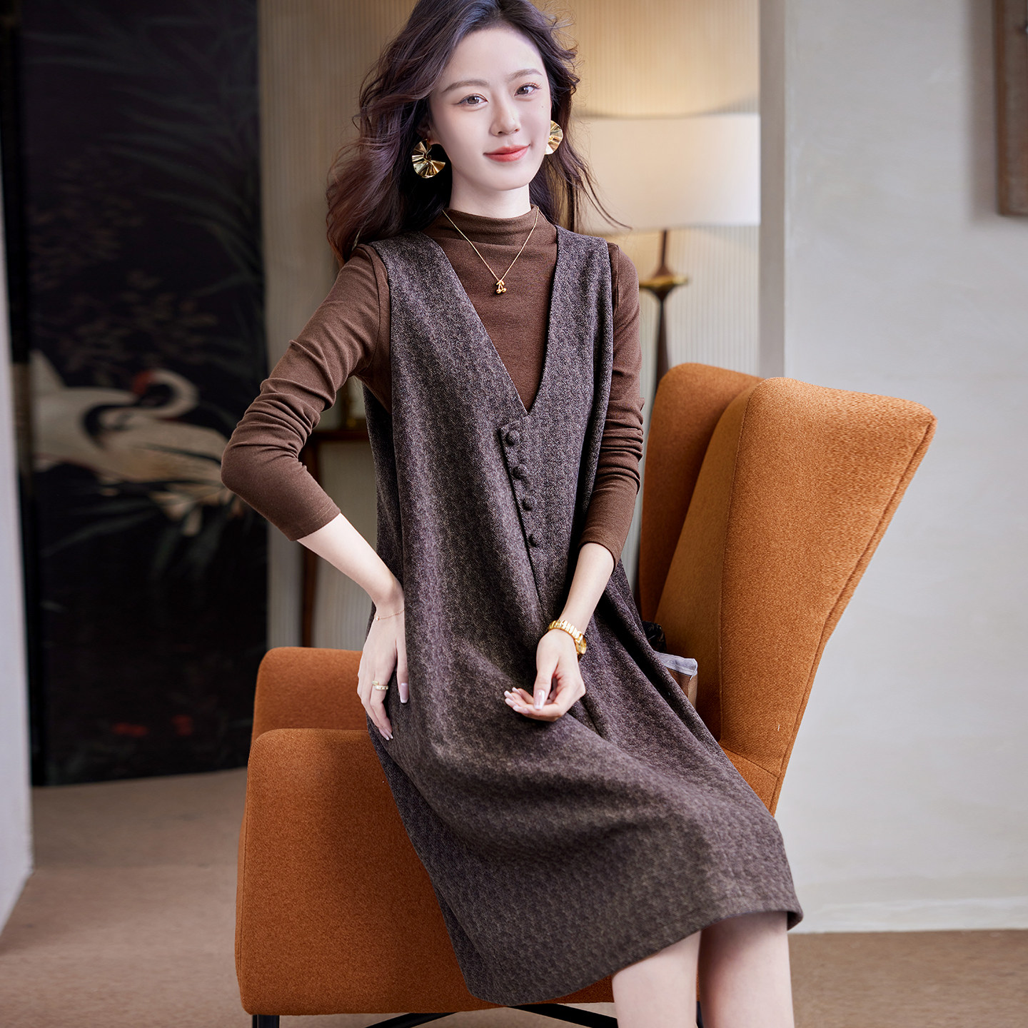 - 秋冬无袖毛呢连衣裙