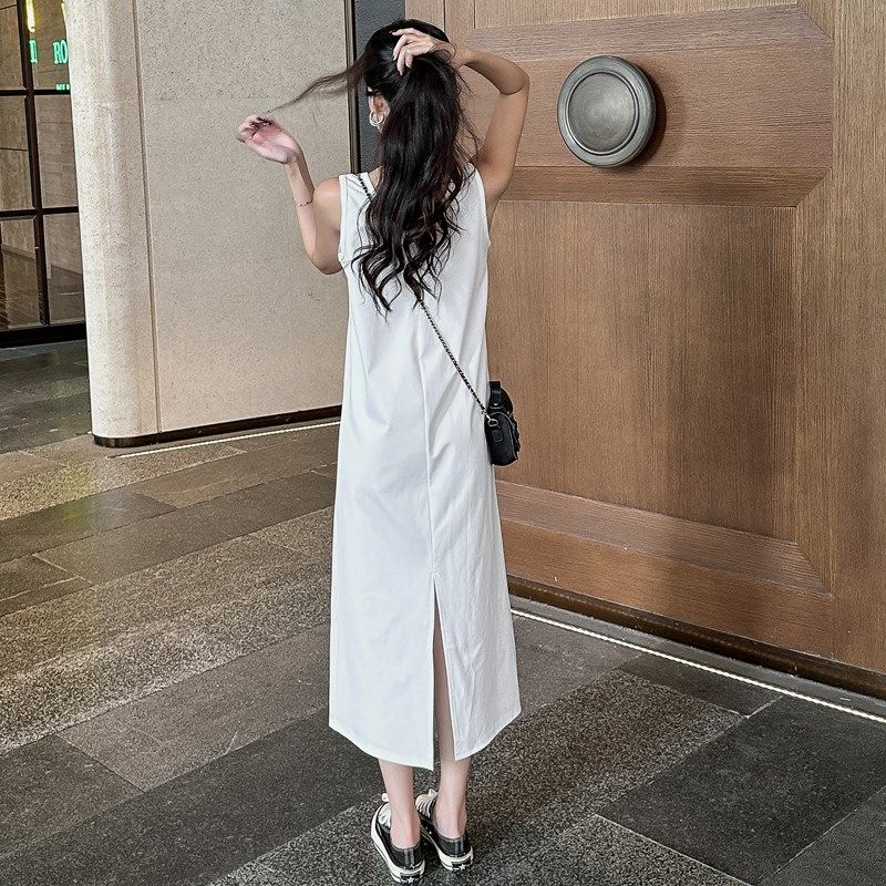 无袖吊带背心连衣裙女2025秋新款宽松内搭打底针织孕妇长款裙灰色