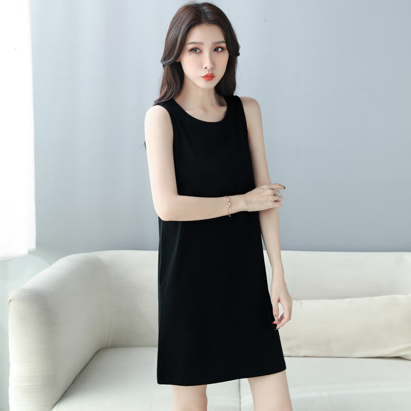 宽松矮个子打底背心连衣裙短款气质百搭内搭女夏季小个子遮腹黑色