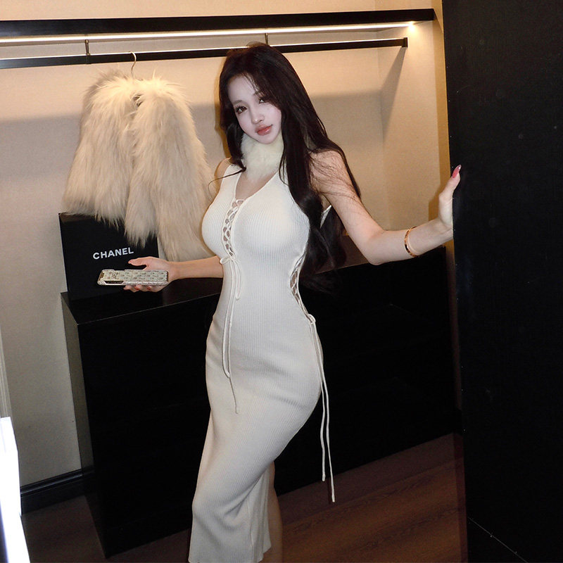 【希腊美神】御姐风高级感镂空绑带包臀裙子针织打底背心连衣裙春