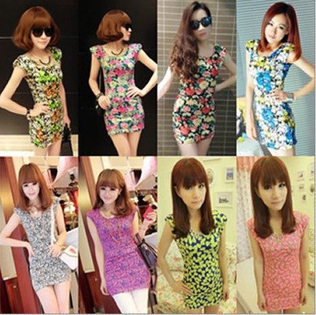 夏装新款夜店性感女装韩版垫肩碎花复古修身包臀打底背心连衣裙潮
