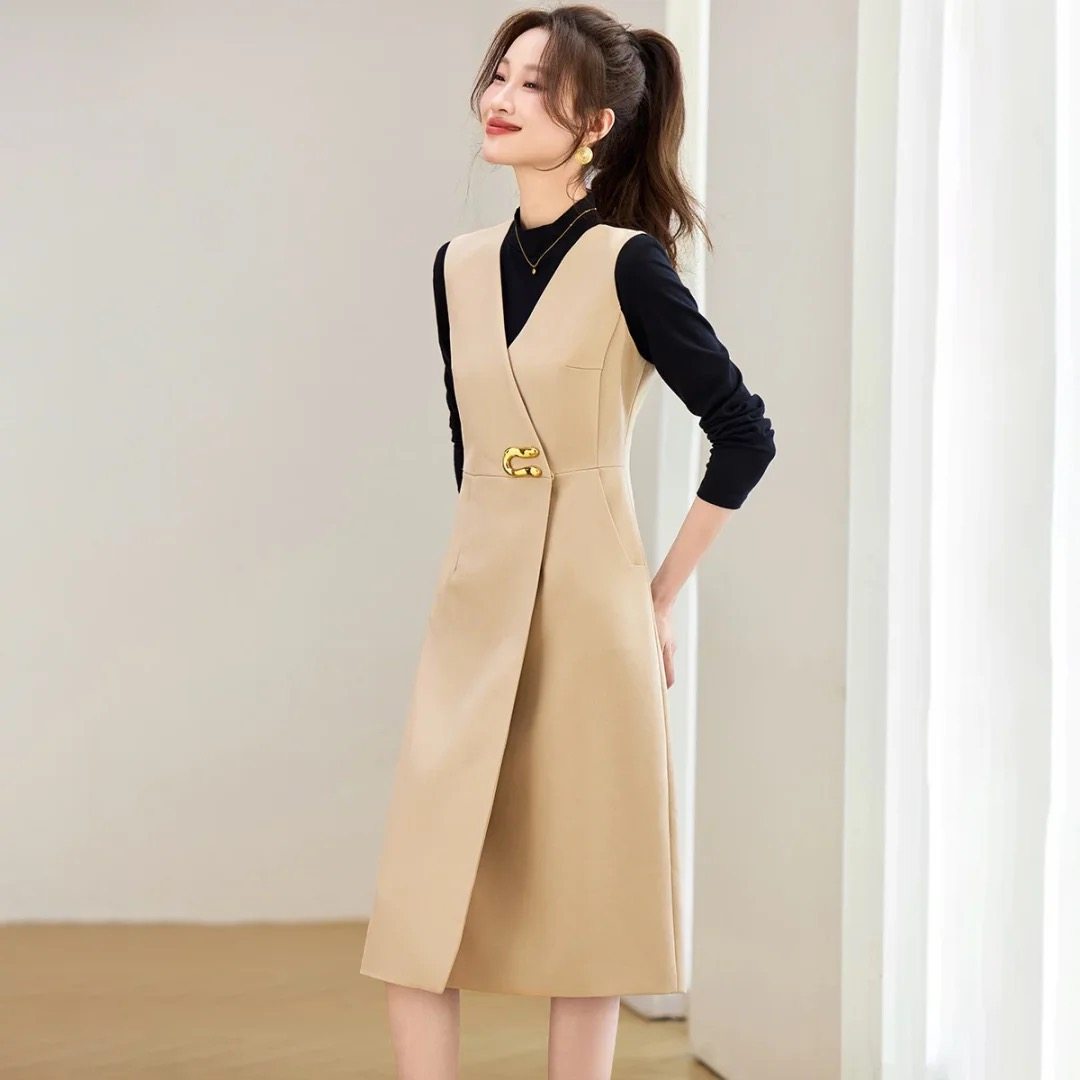 宝诗黎两件套打底背心连衣裙2026早春简约气质老钱风宽松直筒裙