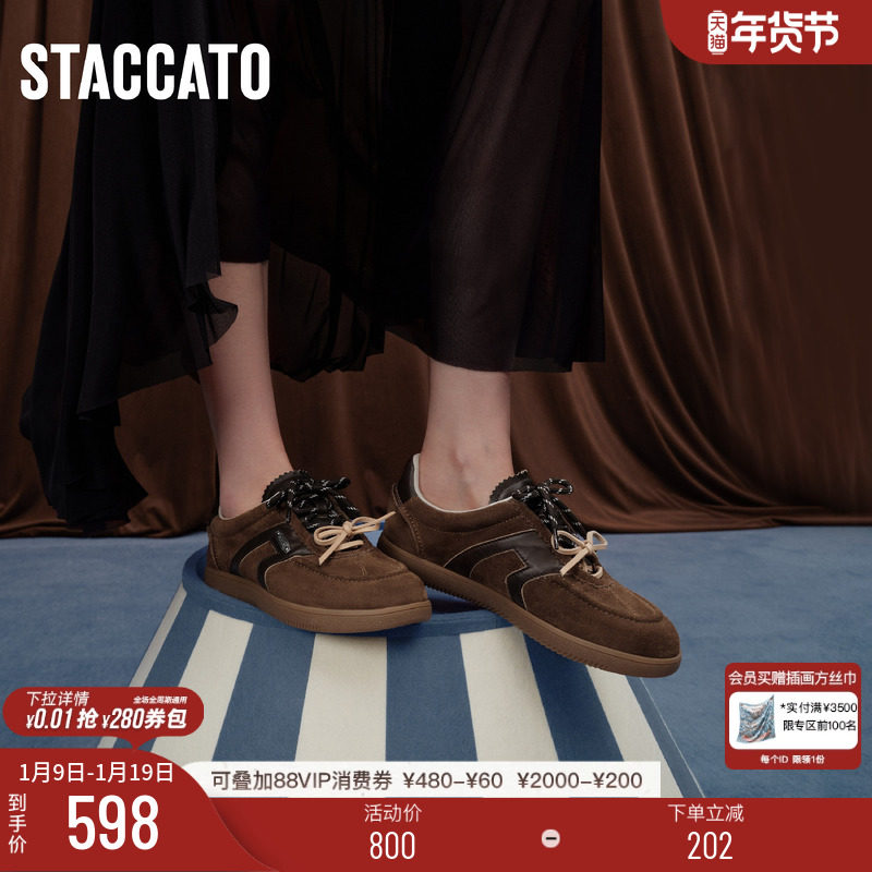 思加图新款小音符复古百搭德训鞋运动休闲板鞋女单鞋女鞋EE934CM5