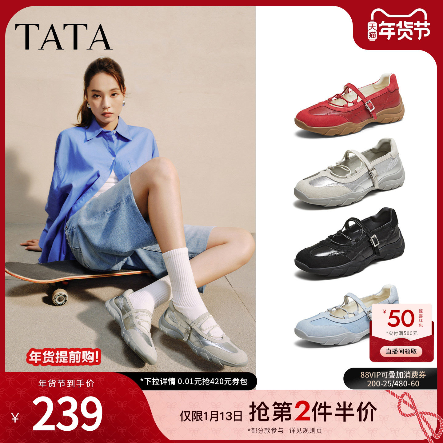 TATA他她女鞋2025运动玛丽珍鞋冬休闲单鞋百搭真皮芭蕾鞋CWS01CQ5