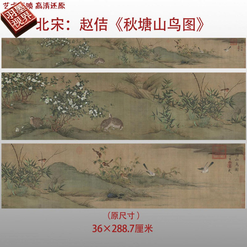 北宋赵佶秋塘山鸟图名家国画真迹复制品高清艺术微喷绢本临摹范本