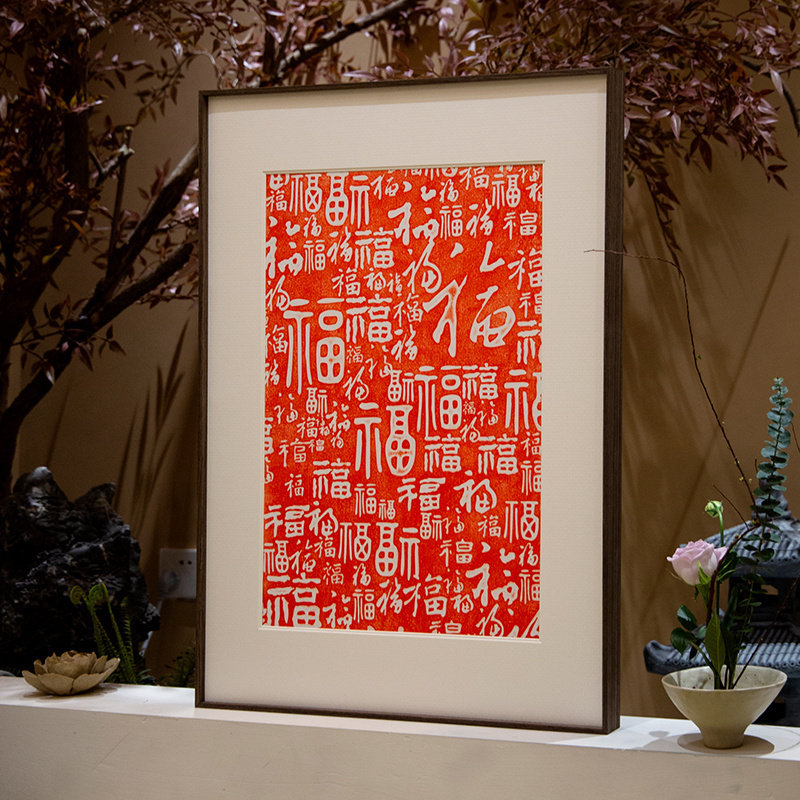 百福图书法字画拓片朱砂挂画装饰画客厅玄关入户装饰画电表箱挂画