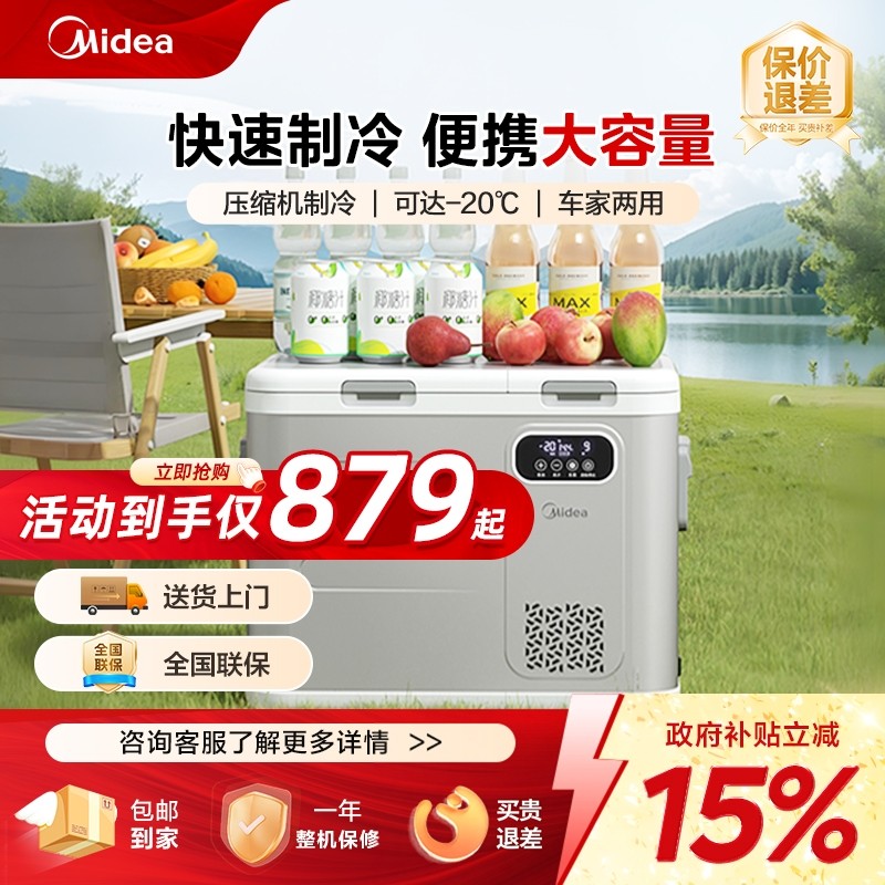 美的新款车载冰箱车家两用小型户外制冷冰柜冰箱大货车专用12v24V