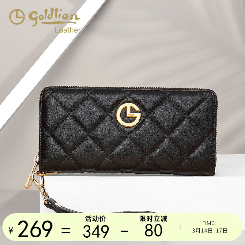 金利来长款钱包女简约新款牛皮手拿包小香风菱格钱夹多卡位皮夹潮