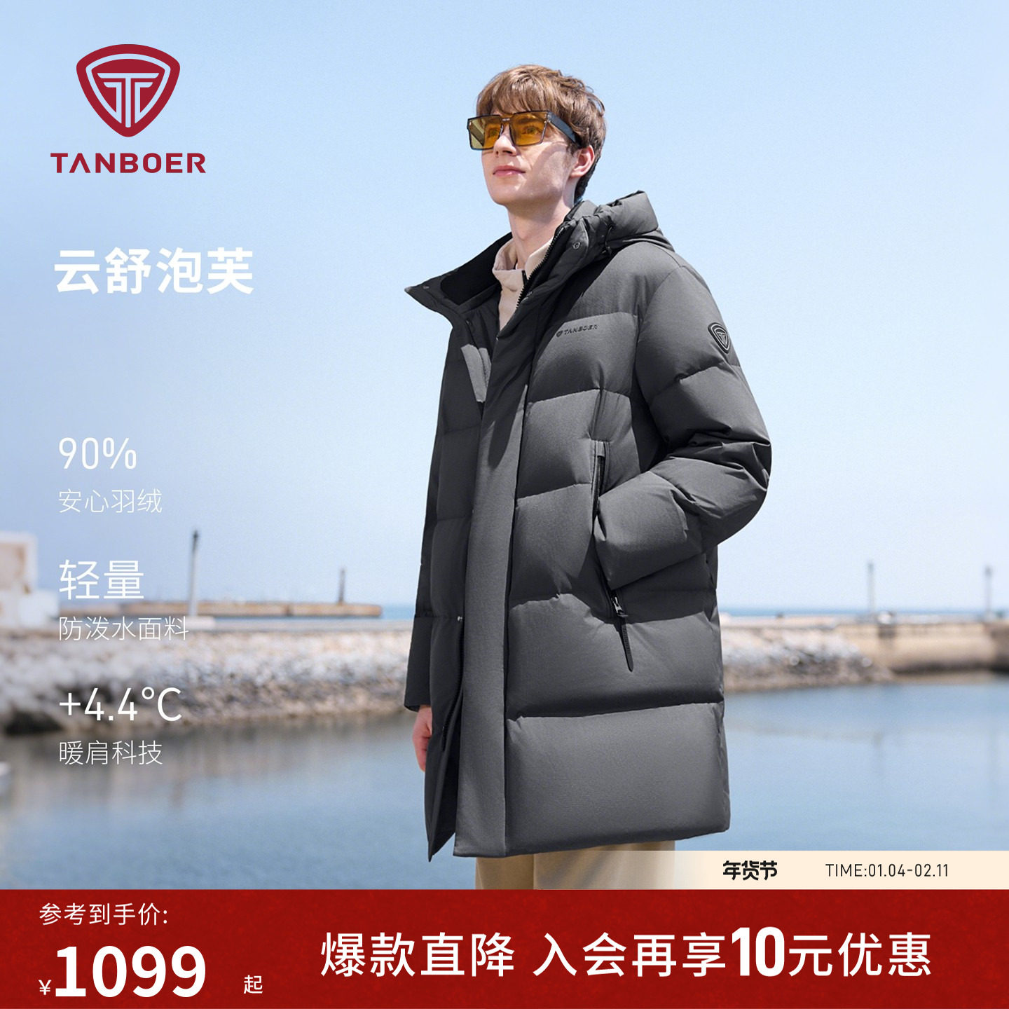 - 中长羽绒服男青年
