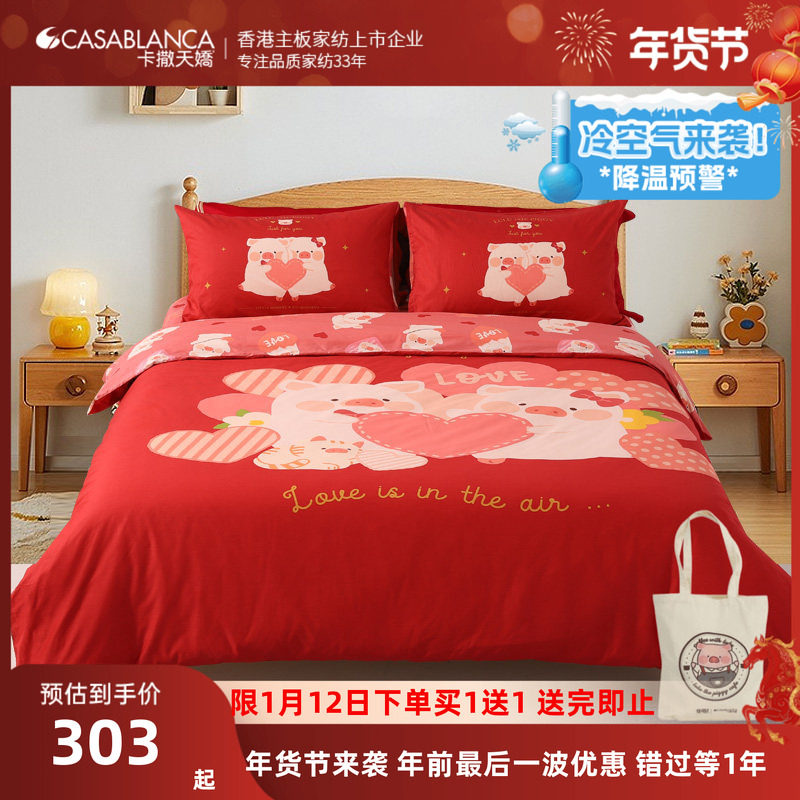 卡撒天娇全棉四件套卡通lulu猪联名IP款精梳棉套件被套床单床笠
