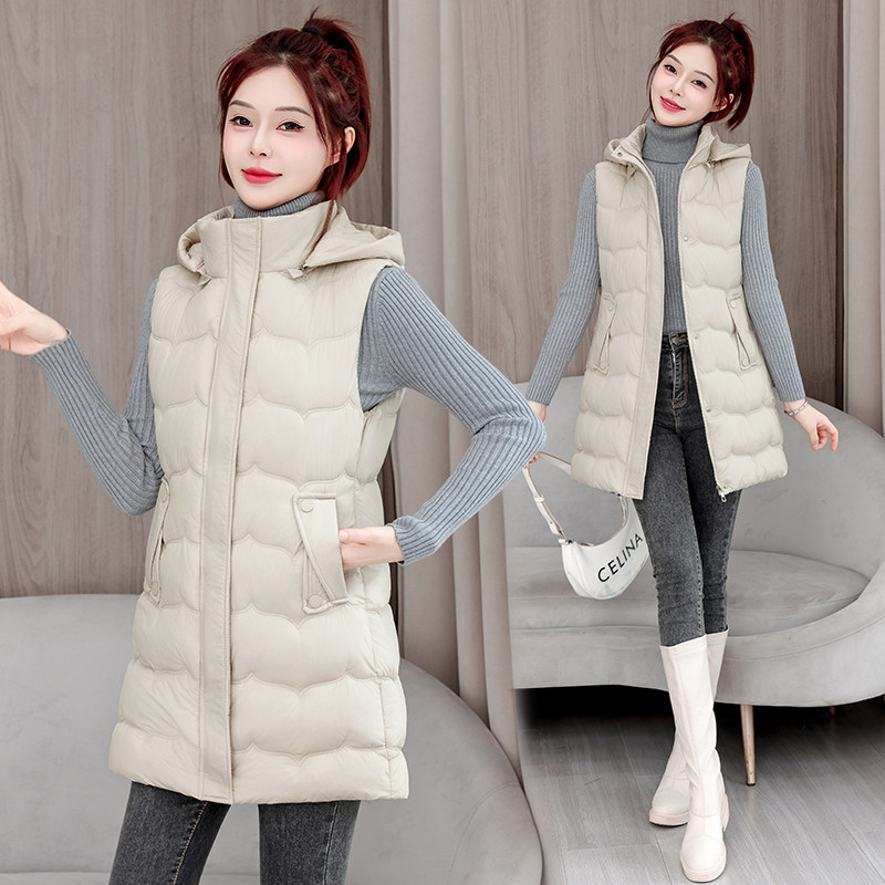 2025新款羽绒棉马甲女中长款过膝加厚保暖显瘦连帽坎肩秋冬季外套
