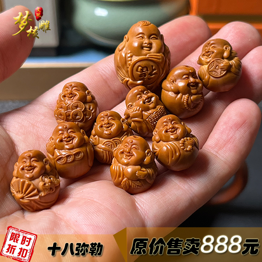 极速文玩橄榄核雕刻八小弥勒手链橄榄胡雕L小沙弥手串梅林铁核手