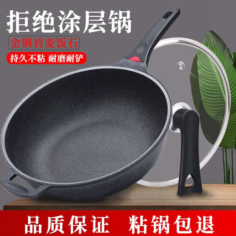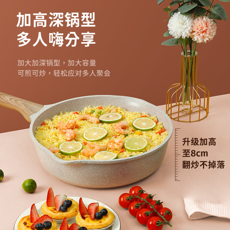 麦饭石不粘煎炒锅家用平底锅煎锅不粘无油烟炒菜锅电磁炉通用炒锅