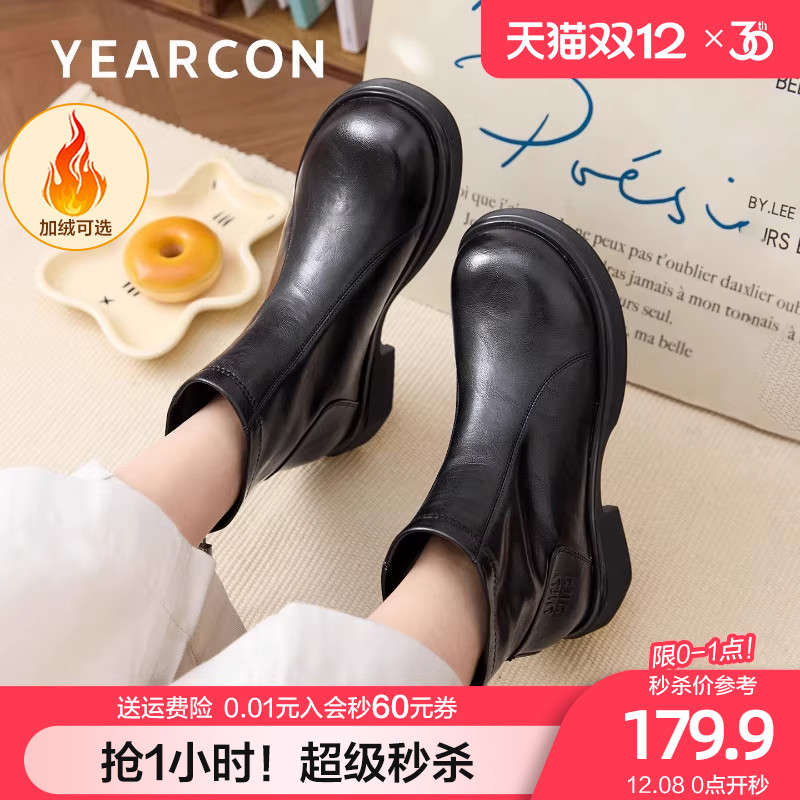 意尔康粗跟圆头切尔西靴女2025冬季新款英伦风厚底瘦瘦短靴马丁靴