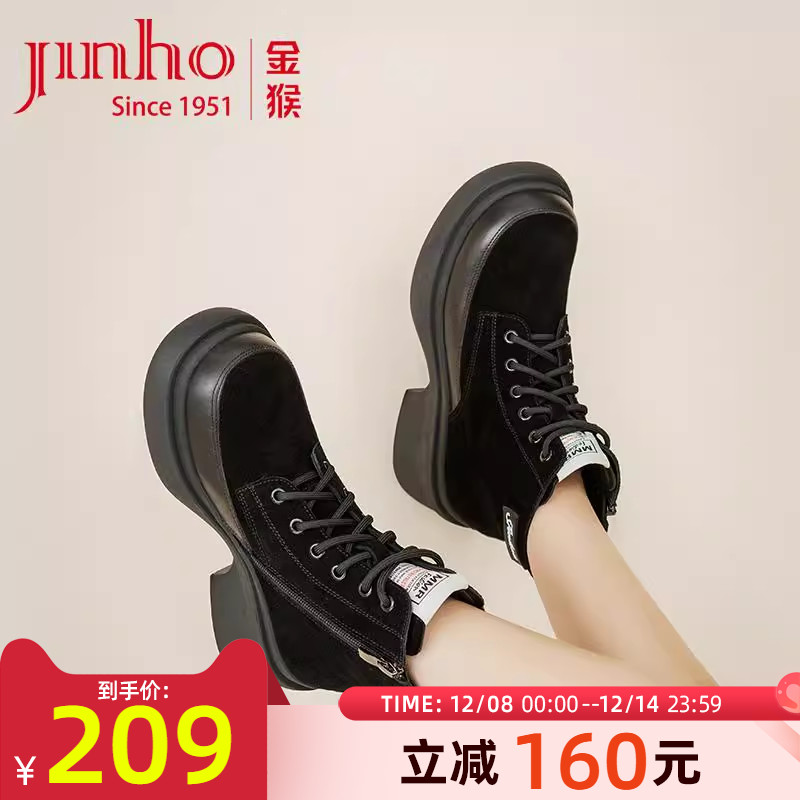 大东女靴马丁靴2025冬季新款复古英伦圆头短靴厚底增高经典工装靴