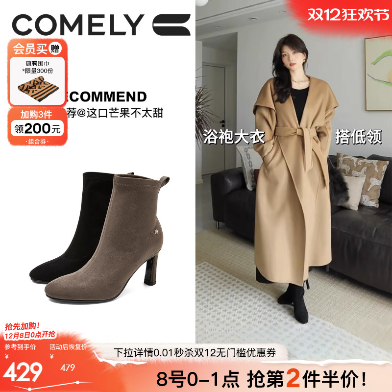 康莉时装周同款粗跟高跟弹力靴女25年秋冬新款圆头英伦短靴瘦瘦靴
