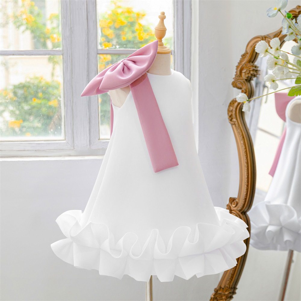 跨境外贸儿童礼服蓬蓬裙女童肩膀蝴蝶结婚纱公主裙小女孩走秀礼服