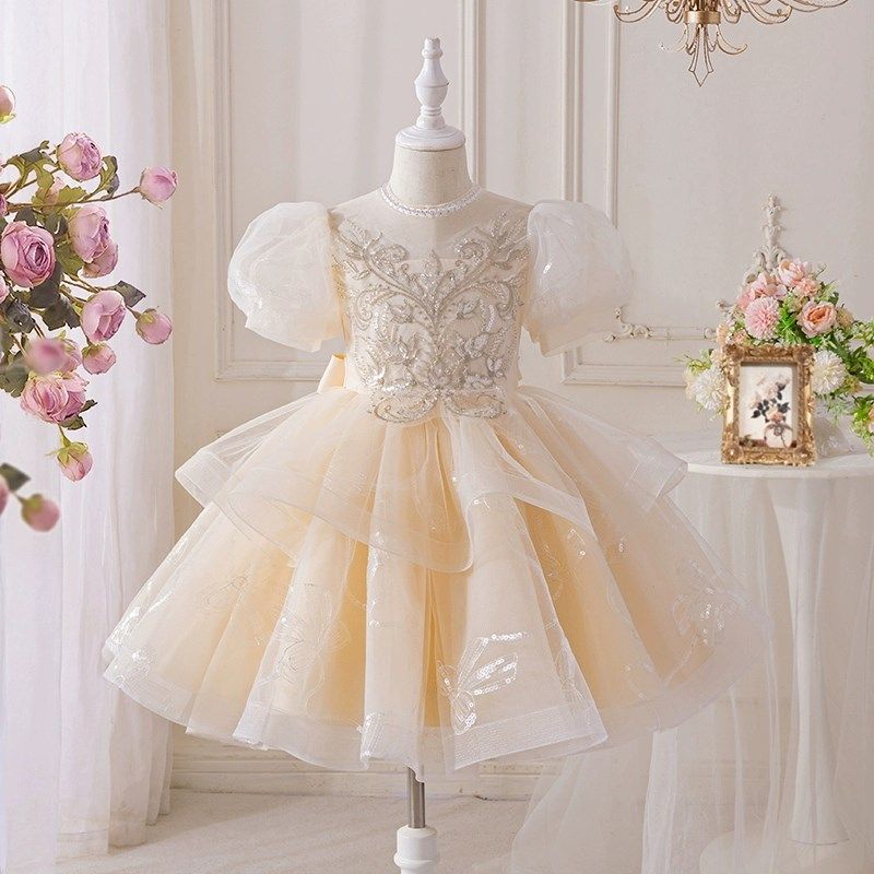 秋冬女童百天周岁礼服洋气公主裙连衣裙婚纱表演裙走秀花童蓬蓬裙
