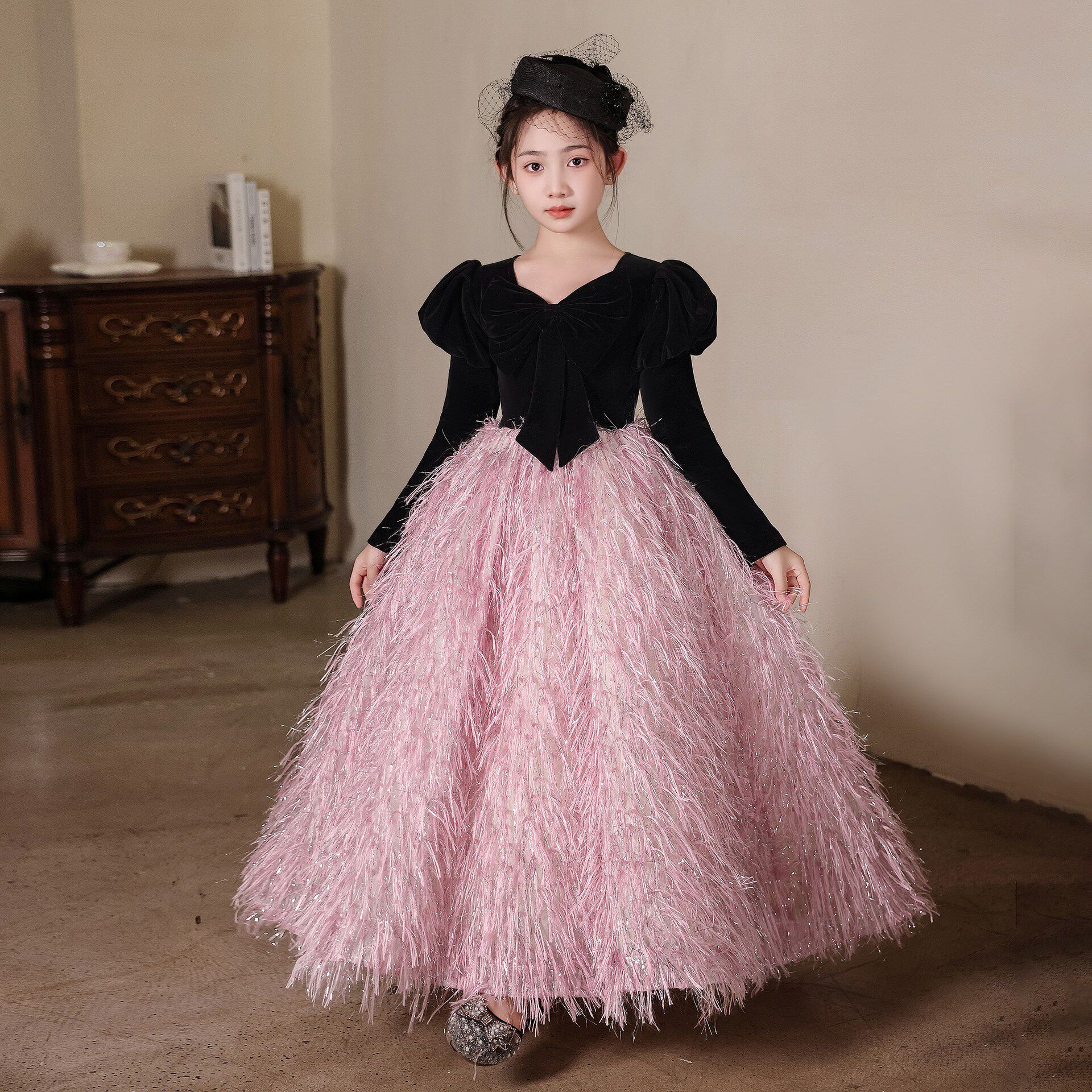 花童婚礼小女孩礼服高端公主裙女童秋冬蓬蓬纱主持人钢琴演奏礼服