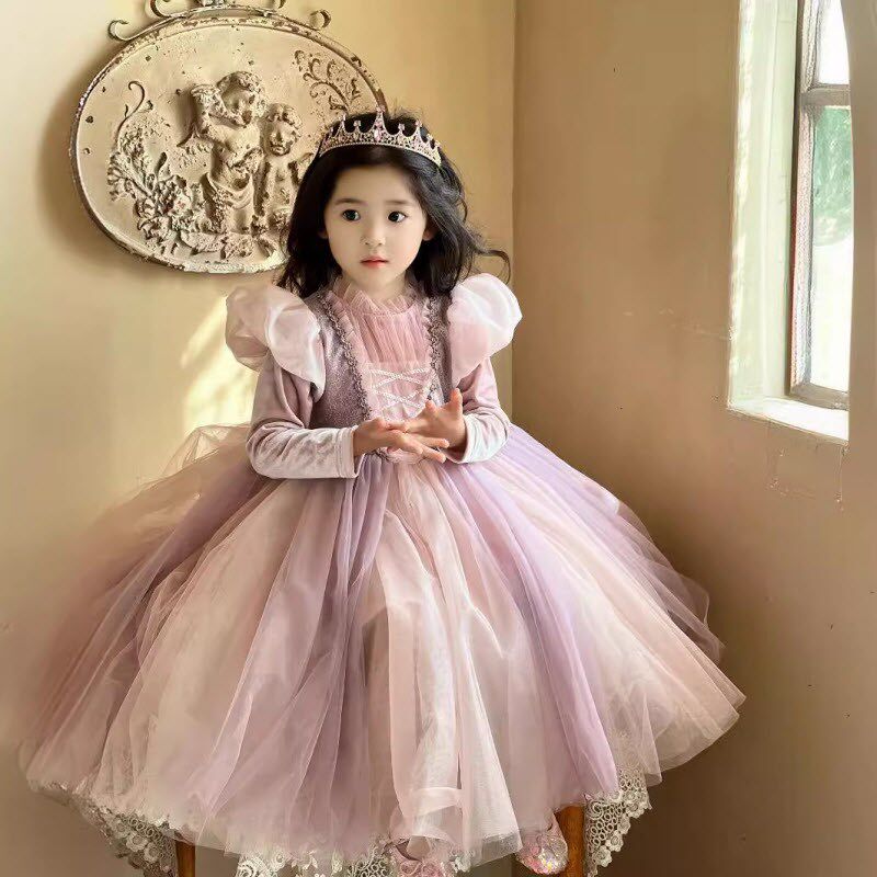 女童公主裙礼服儿童装洋气连衣裙子2025新款秋冬装加绒蓬蓬新年装