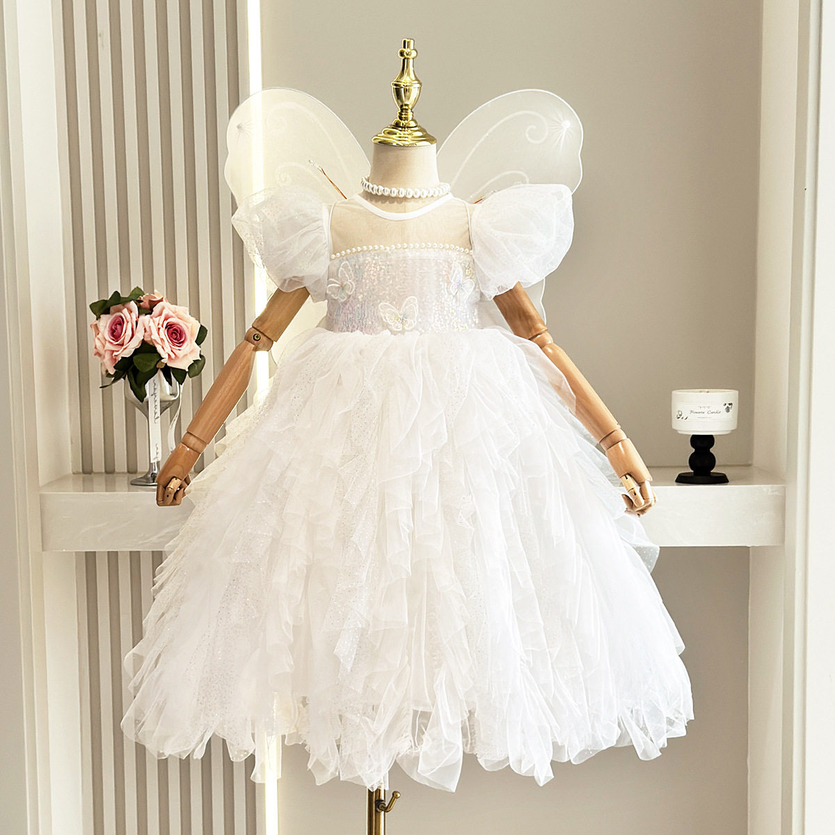 女童连衣裙2025夏装儿童礼服蓬蓬裙女孩泡泡袖生日蝴蝶精灵公主裙