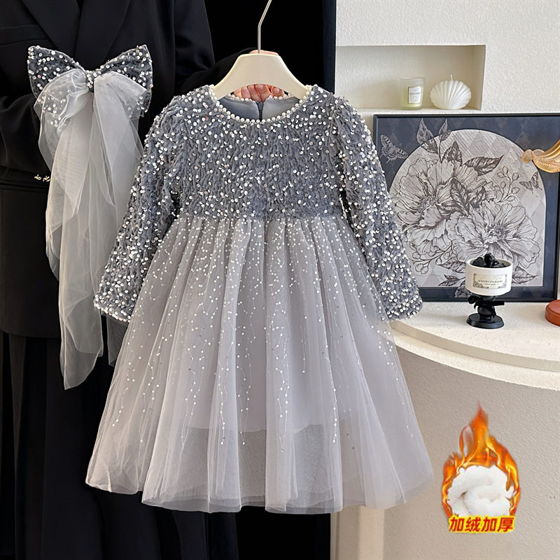 高端女童公主裙秋冬款2025新款儿童装洋气加绒亮片生日礼服蓬蓬裙