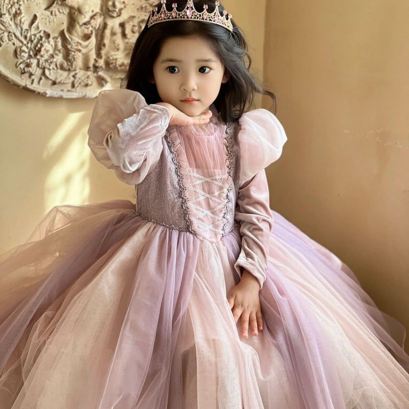 女童丝绒裙秋冬2025新款儿童法式千金风礼服蓬蓬公主裙女孩连衣裙