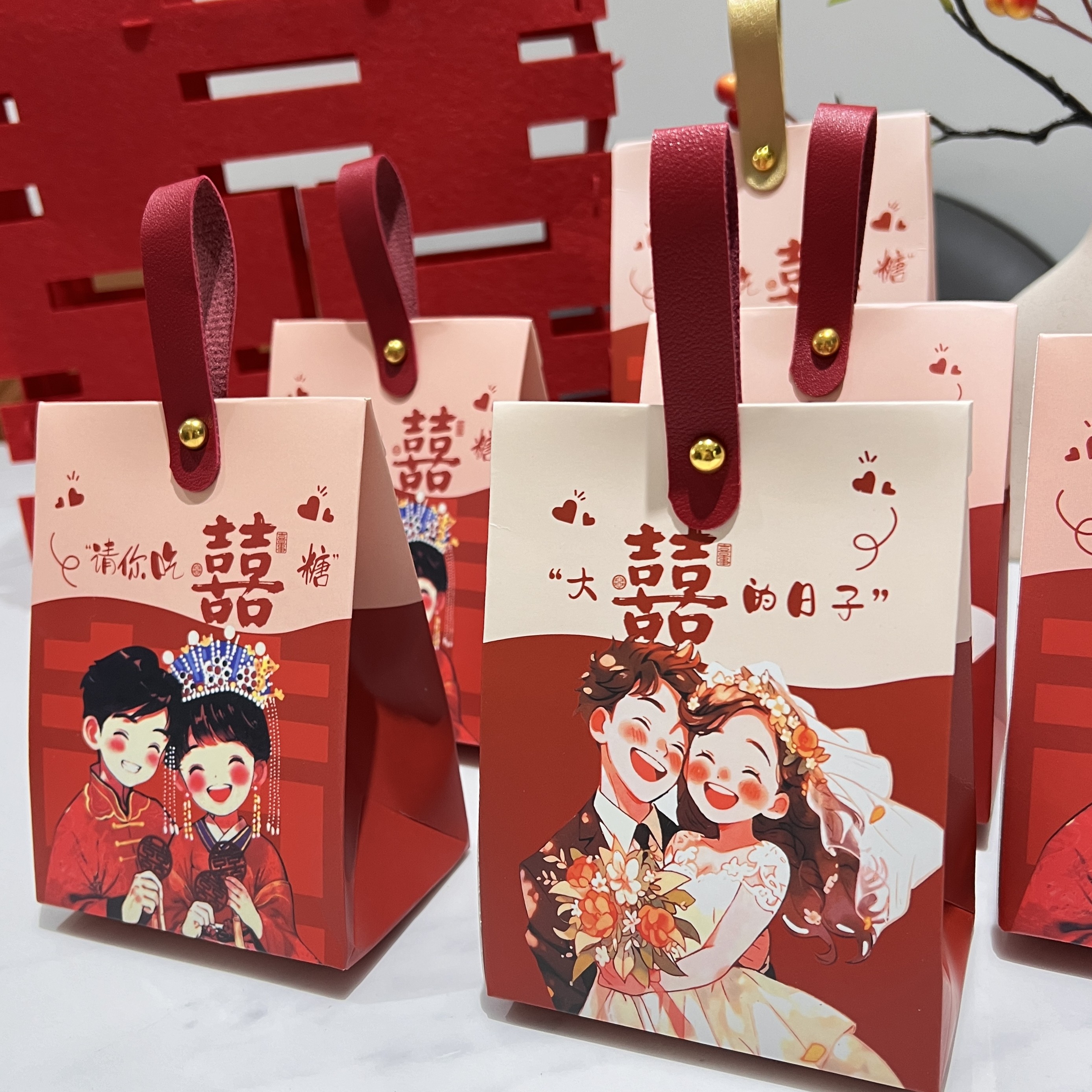 2024新款结婚喜糖盒子手提式婚礼糖包装盒创意礼品盒订婚纸盒批发