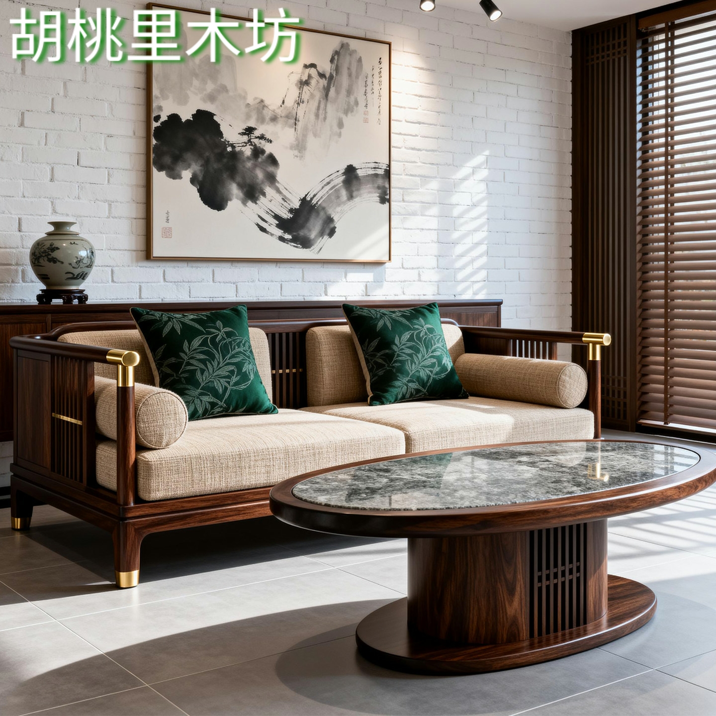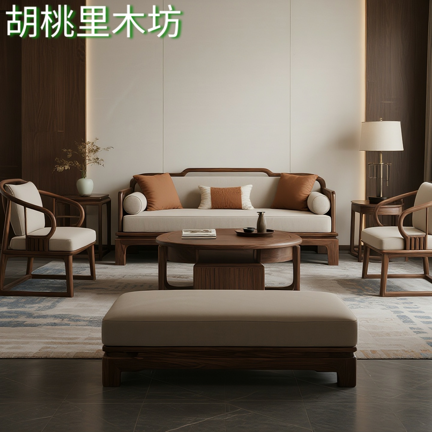 新中式北美黑胡桃木全实木沙发组合现代客厅宋式美学禅意别墅家具