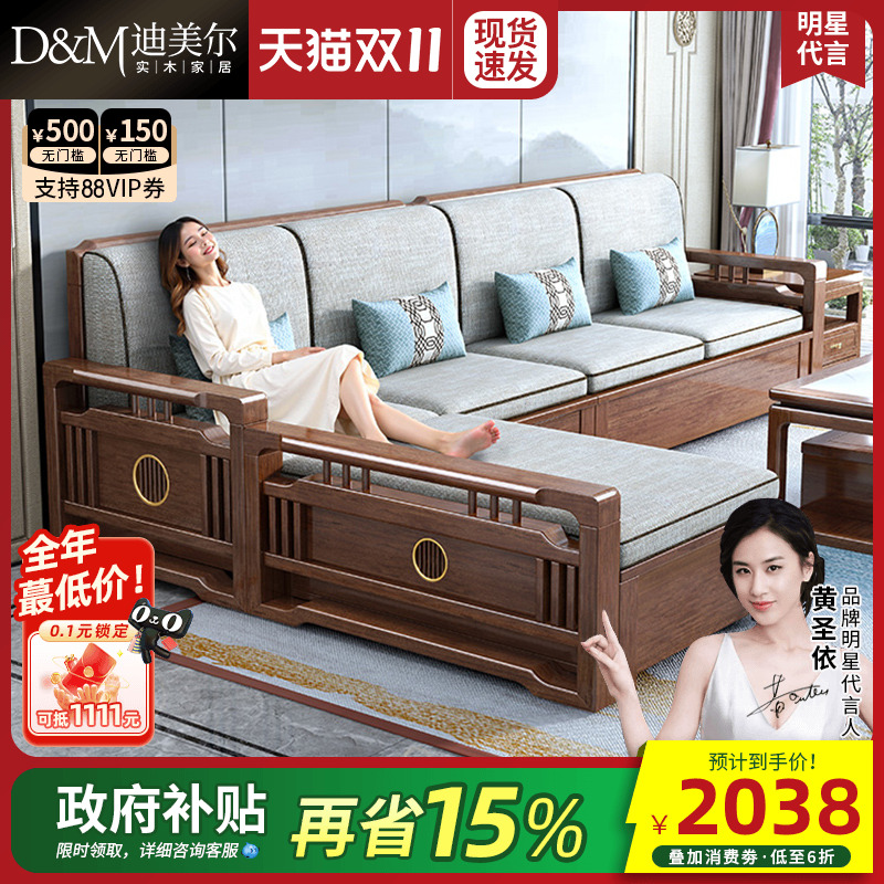 政府补贴实木沙发贵妃新中式胡桃木现代客厅中式全套简约木质家具