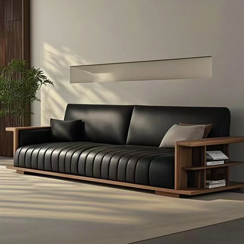 宋氏美学新中式实木沙发现代简约客厅意式轻奢高级感黑胡桃木真皮