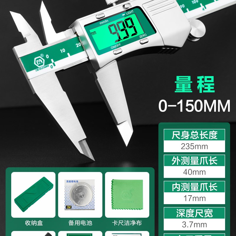 上工高精度电子数显卡尺0-150广陆不锈钢游标200原点防水数字测量