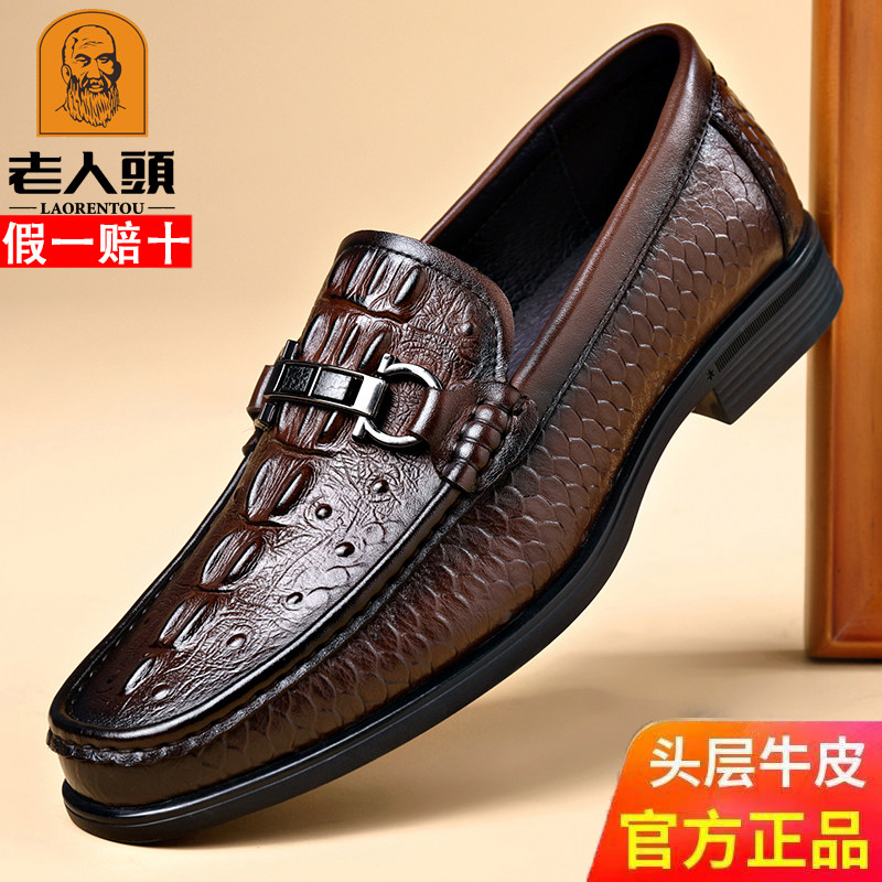 老人头皮鞋男真皮正品高档鞋子2025新款鳄鱼纹高级感商务正装男鞋