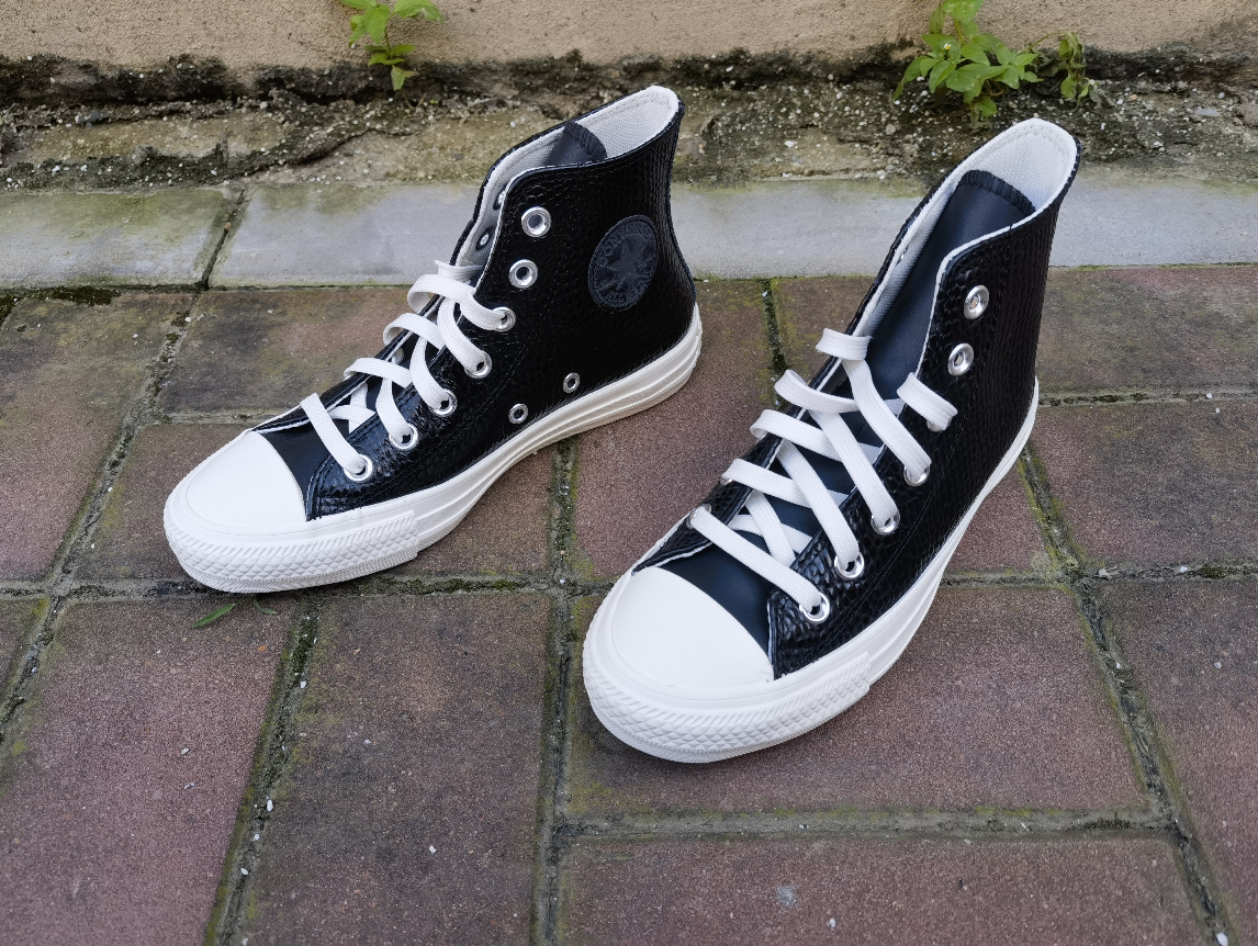 Converse匡威正品鳄鱼皮纹理黑色皮质高帮休闲鞋A04264C