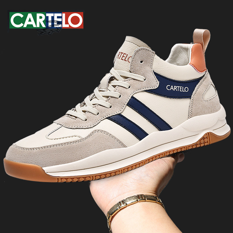卡帝乐鳄鱼男鞋2025新款秋冬季透气运动鞋皮面男士休闲鞋旅游鞋子