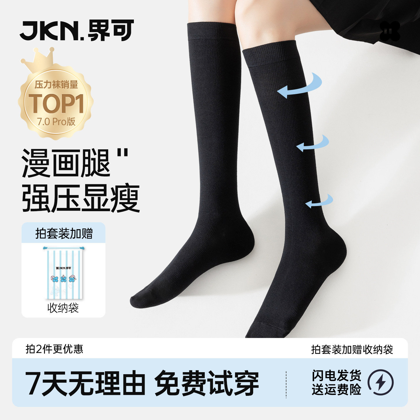 JKN压力小腿袜女春夏强压显瘦腿jk袜子黑色过膝高筒半中筒长筒袜