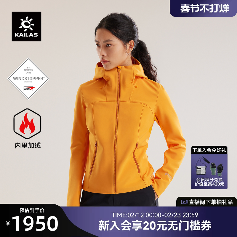 KAILAS凯乐石M8 IC-MAX连帽软壳衣外套女秋冬GTX防风防泼加绒登山