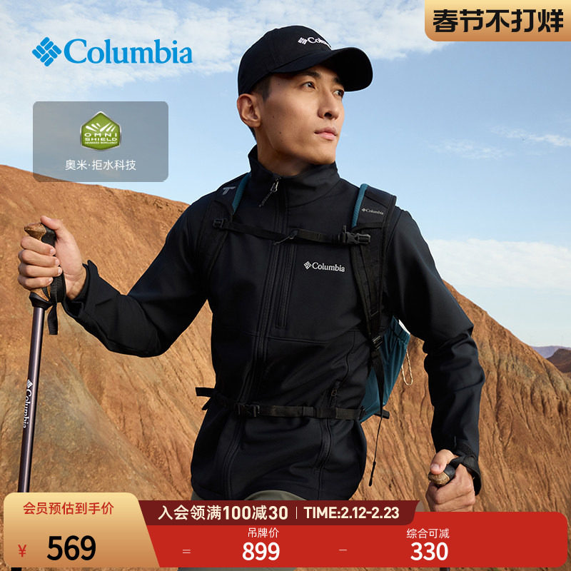 Columbia哥伦比亚户外男子拒水徒步内里抓绒保暖软壳衣外套WE6044
