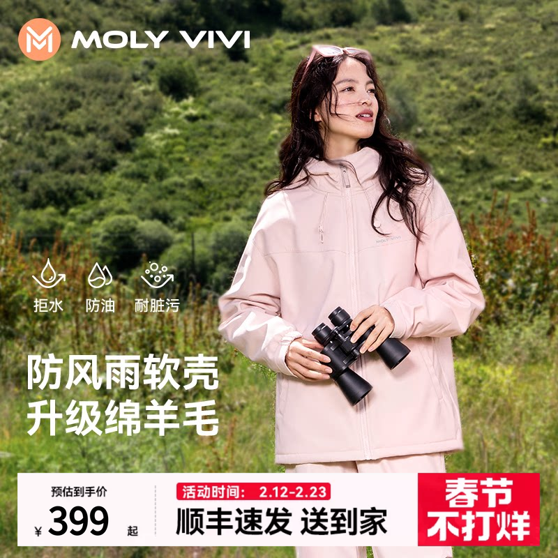 魔力薇薇羊毛软壳衣外套女户外春秋冬三合一防风防水徒步登山服新