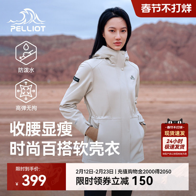 伯希和户外软壳衣女款新款防风保暖运动冲锋外套修身夹克休闲风衣