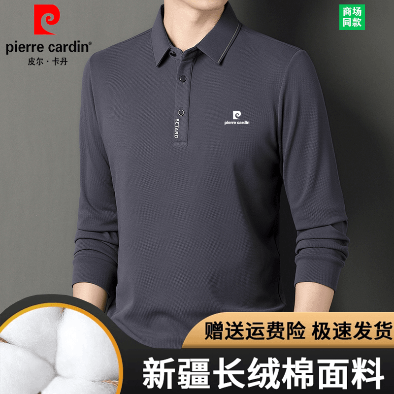 皮尔卡丹高档男士长绒棉长袖T恤秋季中年宽松大码商务休闲polo衫